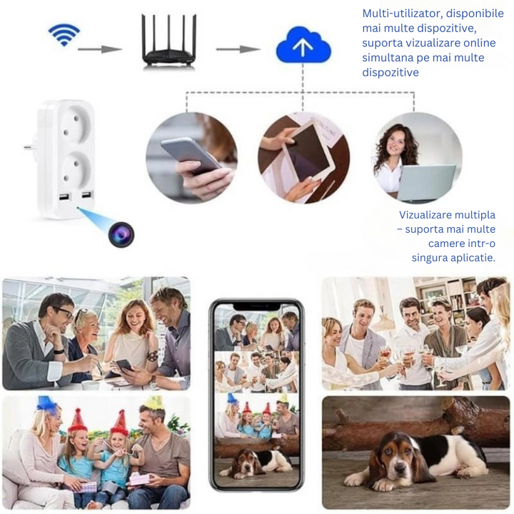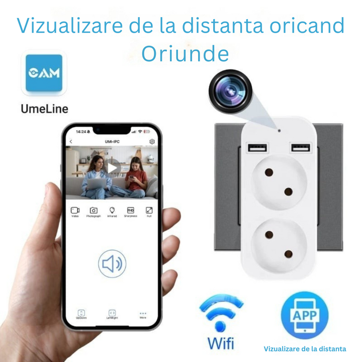 Camera spion cu tehnologie P2P permite vizualizarea live direct pe telefon sau tableta. Daca exista conexiune Wi-Fi in locatie, camera poate fi conectata la router, transformandu-se intr-o camera IP wireless mascată, vizibila de oriunde din lume.