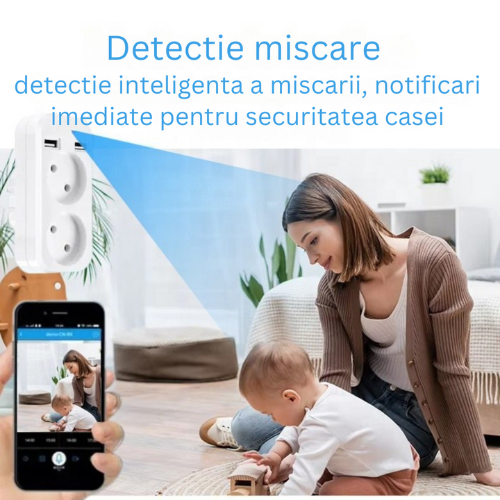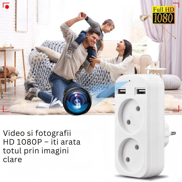 Camera video integrata Full HD ofera rezolutie 1920x1080 pixeli, imagini clare si detaliate. Dispozitivul functioneaza direct conectat la priza, astfel ca nu necesita baterie si poate monitoriza continuu orice zona dorita.