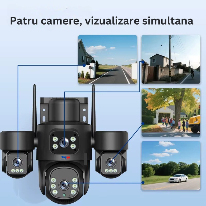 ✅ 4 lentile integrate – supraveghere simultana din mai multe unghiuri