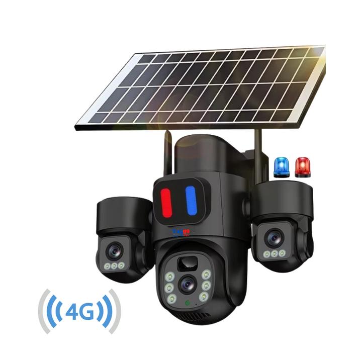 Protejeaza-ti locuinta, curtea sau afacerea cu Camera de Supraveghere 4G cu 3 lentile si panou solar. Cu rezolutie 12MP, viziune nocturna color, comunicare vocala bidirectionala si alimentare solara non-stop, aceasta camera iti ofera siguranta completa, fara cabluri si fara griji.