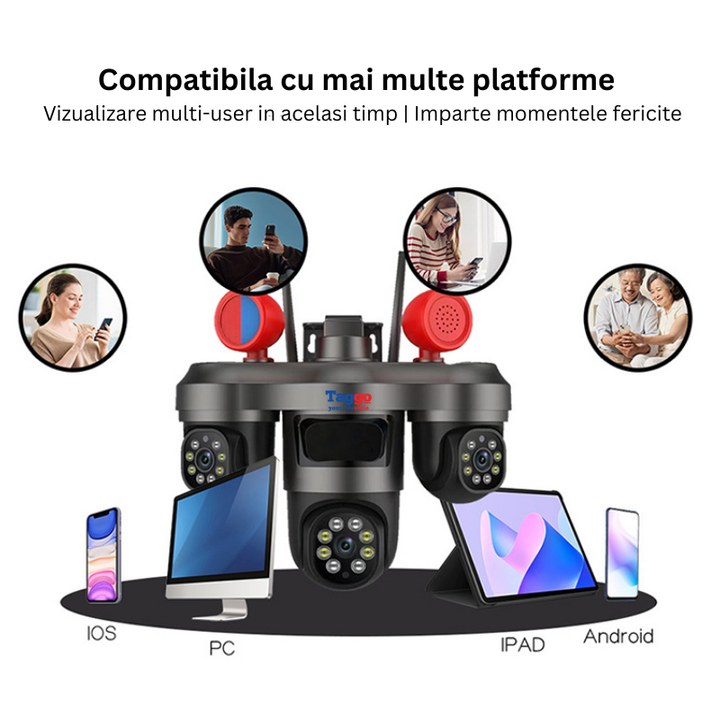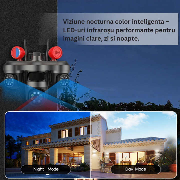 Camera WiFi cu 3 lentile aduce un plus de siguranta si claritate in orice spatiu. Dotata cu rezolutie de 12MP, functii inteligente si control direct din aplicatie, aceasta camera iti ofera o supraveghere completa, de zi si de noapte.