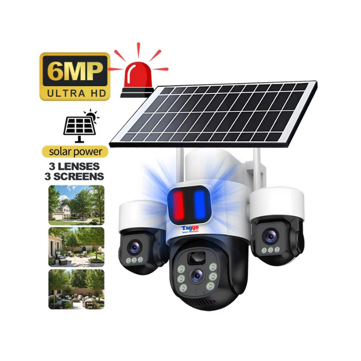Protejeaza-ti locuinta, curtea sau afacerea cu Camera de Supraveghere WiFi alba cu 3 lentile si panou solar. Cu rezolutie 12MP, viziune nocturna color, comunicare vocala bidirectionala si alimentare solara non-stop, aceasta camera iti ofera siguranta completa, fara cabluri si fara griji. Designul alb se integreaza discret si elegant in orice spatiu exterior.