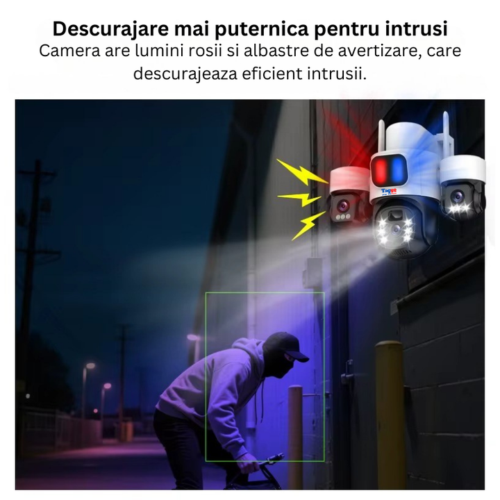 ✅ Avertizare luminoasa si sonora – lumini rosii si albastre care descurajeaza intrusii
