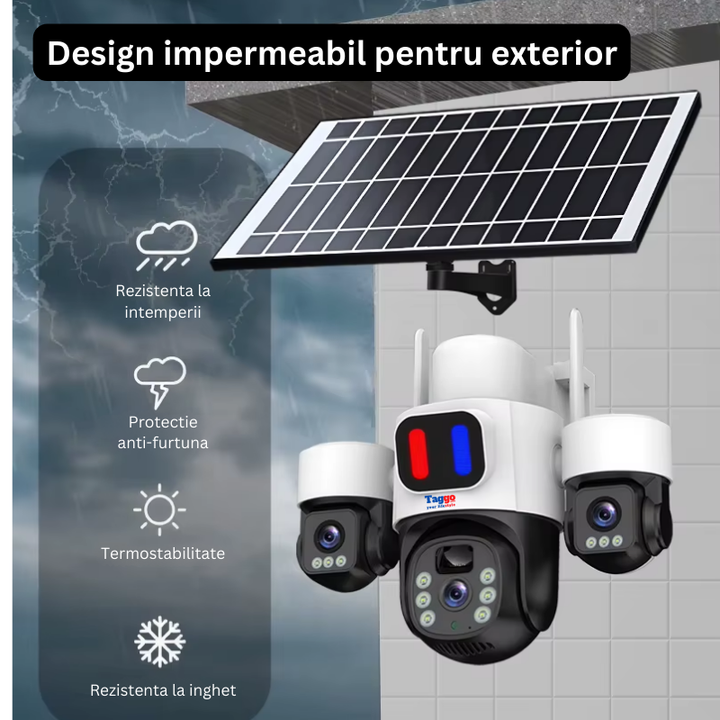 - 1x Camera de supraveghere solara WiFi 12MP, 3 lentile, culoare alba