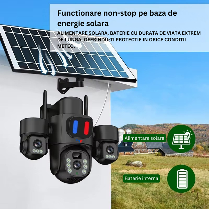 - 1x Camera de supraveghere solara WiFi 12MP, 3 lentile