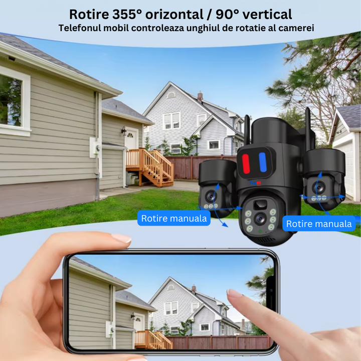 👉 Lentilele nu sunt motorizate si nu se rotesc singure din aplicatie, ci doar manual la montaj. Avantajul este ca ai acoperire extinsa si stabila, fara piese mobile care se pot uza in timp.