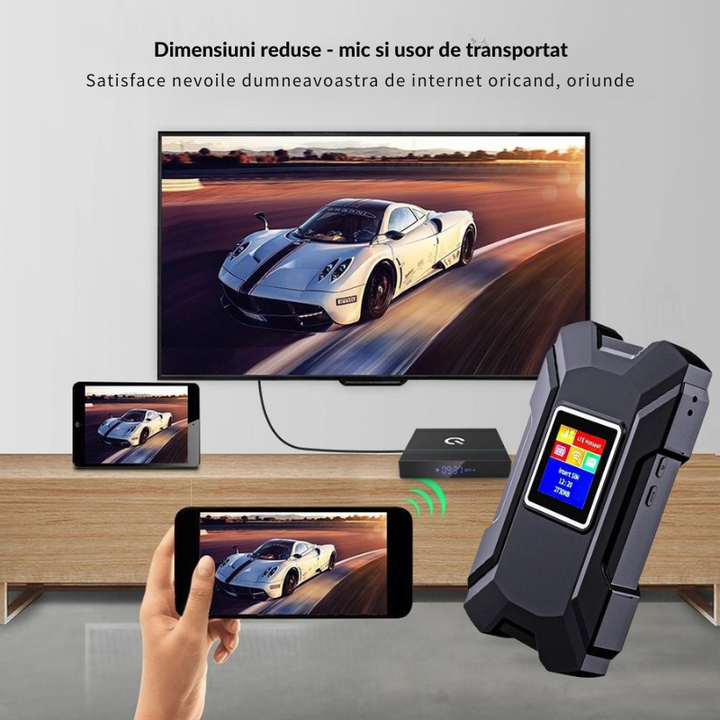 Portabilitate: Dispozitivul este compact si usor de transportat, fiind perfect pentru calatorii, lucru de la distanta sau excursii. Se poate conecta prin retele 4G si poate furniza internet catre mai multe dispozitive simultan 10 (telefoane, tablete, laptopuri).