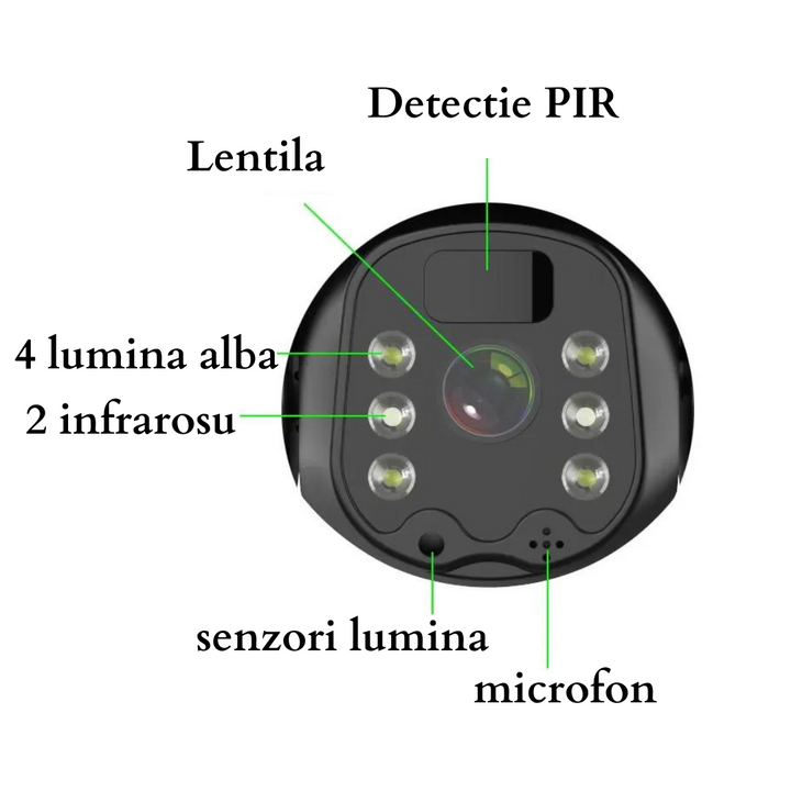 Lentila: 4mm F2.0 lens, Low lux., wide view unghi : 120 grade. 4X digital zoom